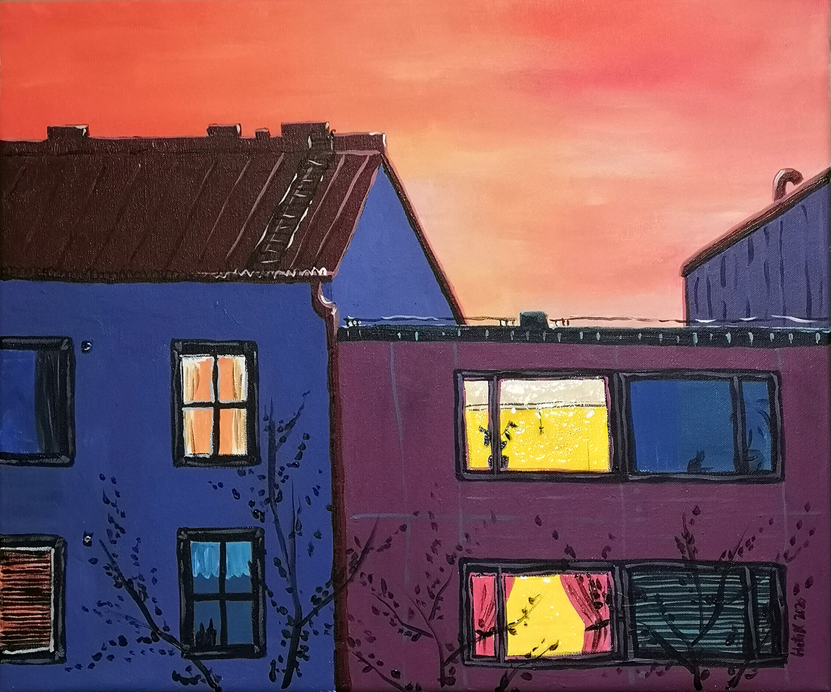 IkkunanTakanaValo_verkkoon Next Published June 13, 2020 at 1180 × 983 in Art Ikkunan takana valo / 2020 / 50 x 60 cm / Akryylimaalaus, ikkunoiden päällä lasite / MYYTY Like Loading...